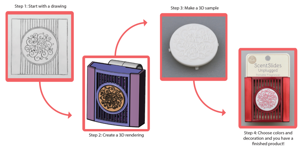 Most designs start the old-fashioned way: paper and pencil, but before long they are converted to digital and then 3-d designs that can be printed using the latest digital technology. Our industrial designers and engineers play a crucial role, but the entire process is guided by our artistic designers.